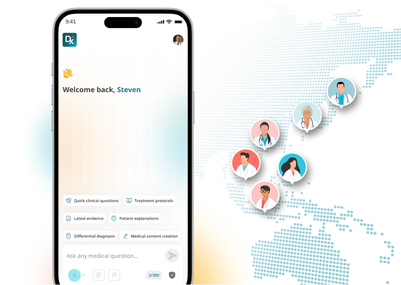 Dx สนับสนุนการตัดสินใจเชิงคลินิกสำหรับบุคลากรทางการแพทย์ที่ได้รับใบอนุญาต ไม่ได้ให้คำแนะนำทางการแพทย์เฉพาะบุคคลหรือทดแทนมาตรฐานการดูแลในท้องถิ่น